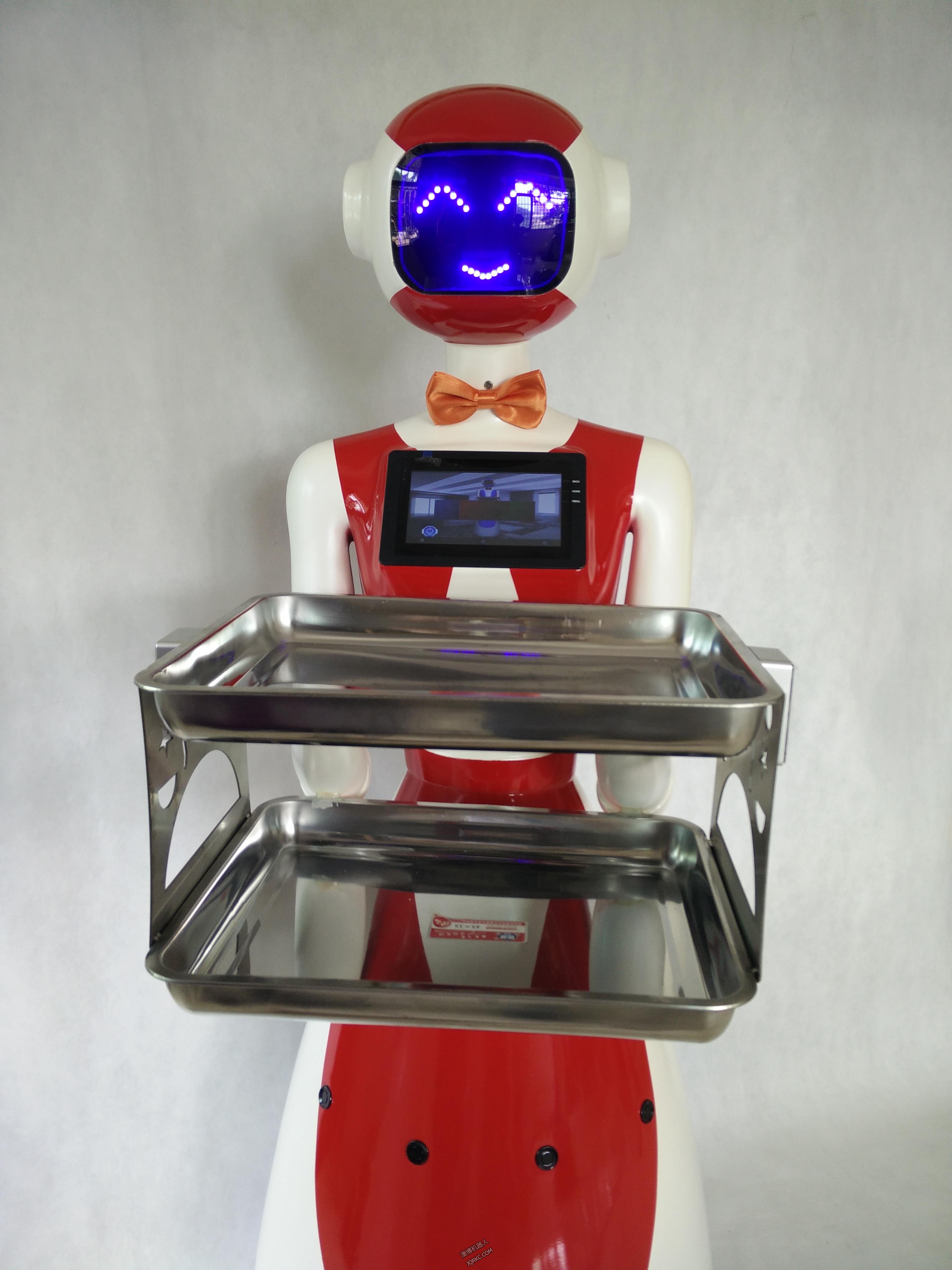 送餐機(jī)器人外殼主要材料有玻璃鋼、亞克力、塑料等。可在餐廳、房地產(chǎn)銷售中心、KTV、酒店、會所、慶典、婚慶、 晚會、展會、商場等場所用來迎賓、送餐、導(dǎo)購、送茶、送鮮花、送傳單、送禮品、送禮品在舞臺上和主持人互動節(jié)目、送婚禮戒指和主持婚禮、頒獎和主持頒獎等。