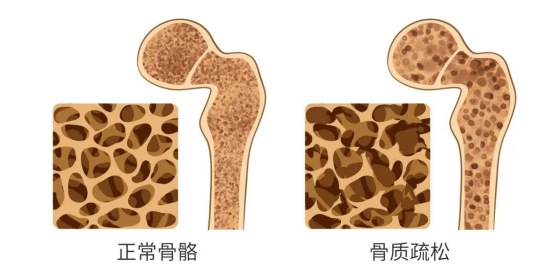 骨質疏松是指骨骼在顯微鏡下呈蜂窩狀,與正常健康骨骼相比,骨質孔隙大,骨骼密度和骨量出現下降,以致骨的脆性增高及骨折危險性增加的一種全身性骨病。它通常很難發現,卻會造成嚴重后果,因此注重骨骼健康,預防骨質疏松很重要。