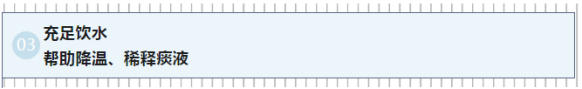 在呼吸道感染期間,充足的飲水可促進機體新陳代謝,幫助降溫、稀釋痰液。