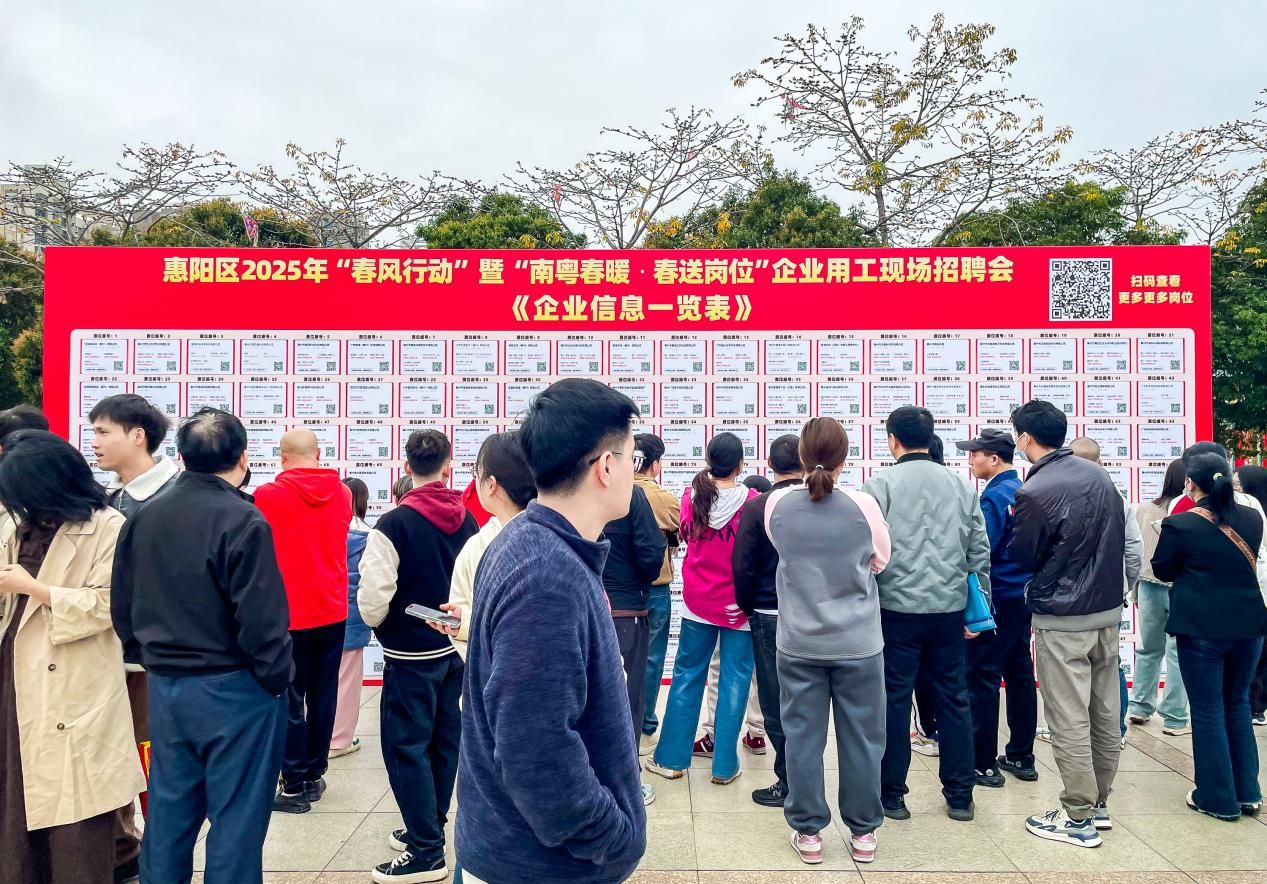 2月17日,惠陽區2025“春風行動”暨“南粵春暖·春送崗位”企業用工現場招聘會在區市政廣場順利舉行。