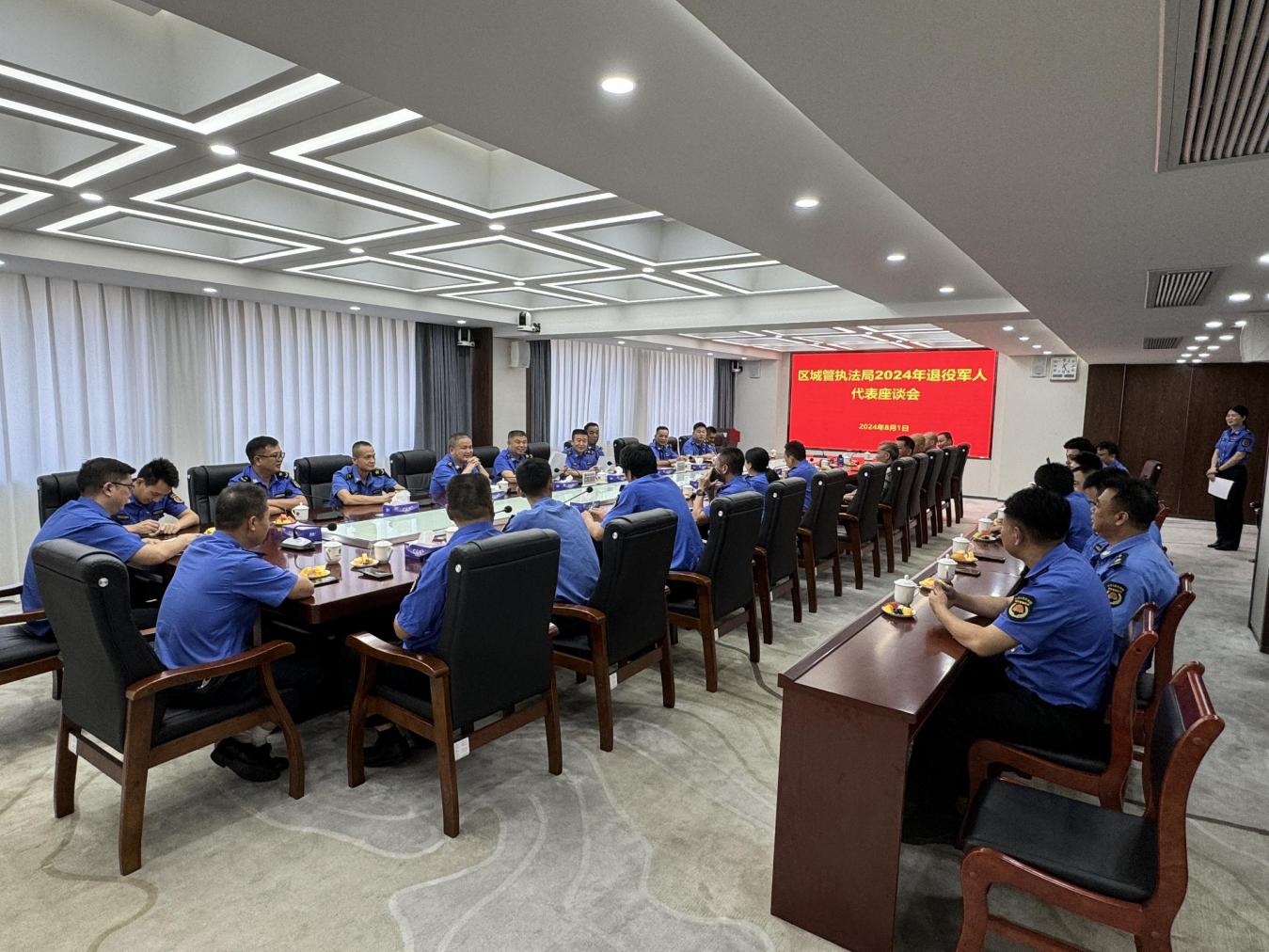 為慶祝中國人民解放軍建軍97周年,賡續雙擁優良傳統,8月1日下午,區城管執法局在局六樓多功能會議室召開慶“八一”建軍節座談會。會議由黨組書記、局長蔡鍵伍主持,局退役軍人代表共30余人參加會議。