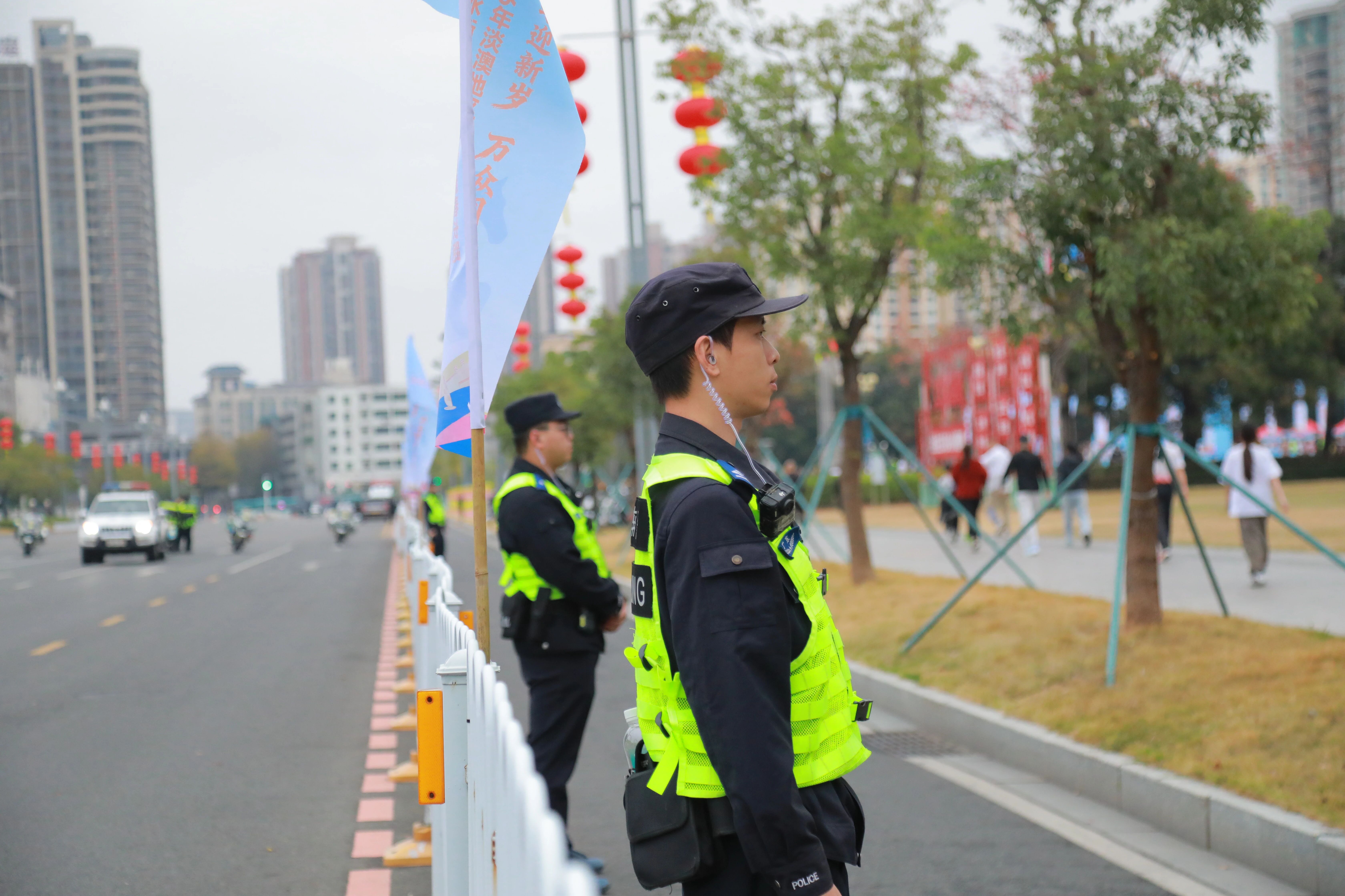 為確保賽事安全有序進行,惠陽公安提前部署、精心組織。上午8時,執勤警力、保安、志愿者便早早就位,做好賽前安全檢查,以無聲的堅守織就暢通跑道。