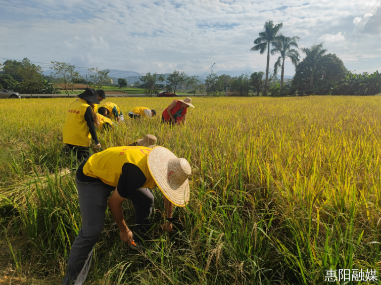 花塘村種植的晚稻品種主要是南晶香占,種植面積共有57畝,收割以機器為主、人工為輔的方式進行。晚稻開鐮當天,沙田鎮機關第一黨支部、第五黨支部和花塘村黨支部,結合開展“慶豐收、促和美”主題黨日暨“為群眾辦實事”活動,動員黨員以志愿者的身份來到花塘村的稻田里參加勞動。大家手持鐮刀,積極幫助農戶收割晚稻。