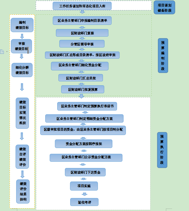 (一)區(qū)財(cái)政部門負(fù)責(zé)牽頭擬定專項(xiàng)資金管理制度;匯總編制專項(xiàng)資金預(yù)算,審核區(qū)業(yè)務(wù)主管部門專項(xiàng)資金目錄清單、績(jī)效目標(biāo)、新增事項(xiàng)等;組織總預(yù)算執(zhí)行,辦理資金下達(dá)和撥付;對(duì)預(yù)算執(zhí)行和績(jī)效目標(biāo)實(shí)現(xiàn)情況進(jìn)行監(jiān)控通報(bào),組織開展重點(diǎn)績(jī)效評(píng)價(jià)和抽查等;不直接參與具體項(xiàng)目審批。